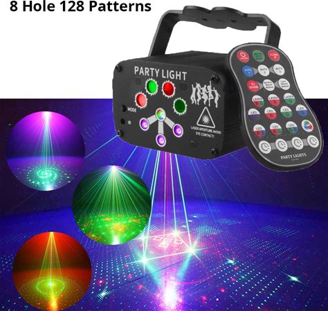 RGB Mini DJ Disco Laser Light Projector USB Rechargeable LED UV Sound Strobe Stage Effect Wedding Xmas Holiday Party Lamp SPAIN / 8 Hole 128 Patterns / USB Recharge