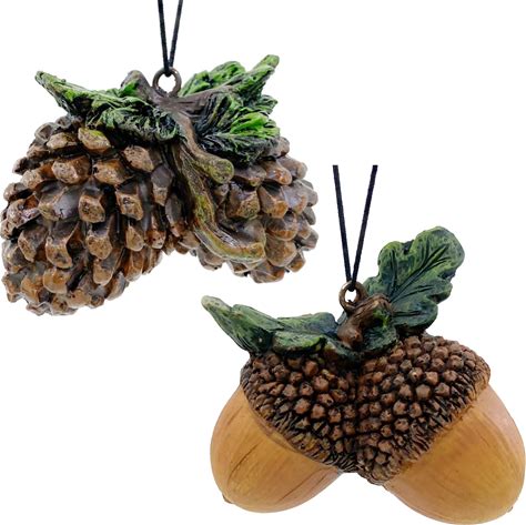 Pinecone Acorn Ornaments - Christmas Tree Hanging Holiday Decoration, Set Of 2