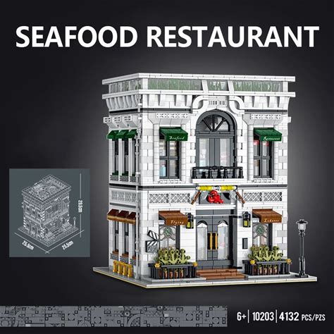 4132 Pieces, Seafood Restaurant Building Block Set, MOC Modular House Building Kit, City Streetscape