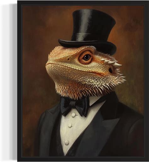 Bearded Dragon In Tuxedo Poster Art Print, Animal Portraits Humor Wildlife Artwork Wall Art For Bedroom, Living Room Decor Prints Gallery 20 (Bearded