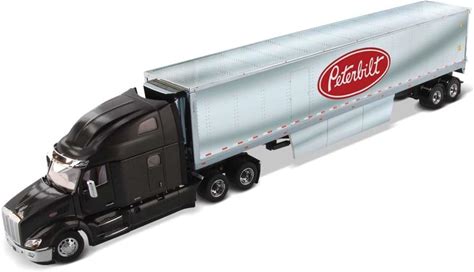 Diecast Masters 1:50 Scale Peterbilt 579 Ultraloft Day Cab SBFA With 53' Chromed Refer With Petebilt Logo | Real Truck Specifications | Transport Series | Legendary Black Model 71071