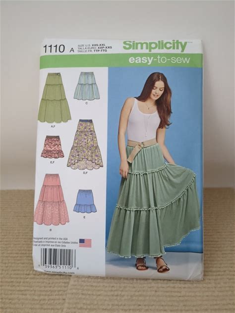 Simplicity 1110 Easy-To-Sew Tiered Skirt 5 Lengths Misses XXS-XXL 4-26 Uncut. Simplicity. Sewing Patterns. 039363511106.