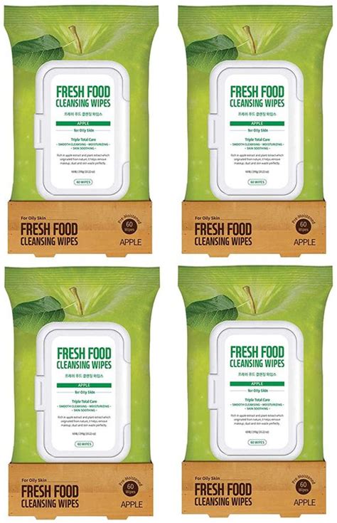 Farmskin Freshfood For Skin Facial Cleansing Wipes Makeup Daily Remover Apple For Oily Skin, 60 Count (Pack Of 4)