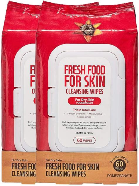 Farmskin Freshfood For Skin Facial Cleansing Wipes Makeup Daily Remover Pomegranate For Dry Skin, 60 Count (Pack Of 2)