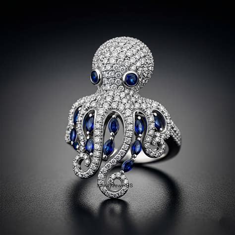 Silver Tentacle Ring - Octopus Jewelry With Blue Cubic Zirconia Gemstone Perfect For Sailors And Pirate Lovers Handcrafted Sea Creature Ring