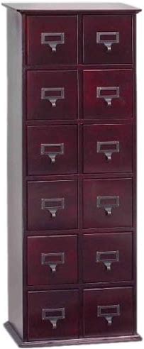 Leslie Dame Solid Oak Library Card File Media Cabinet, 12 Drawers, Cherry