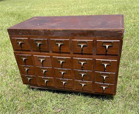 Raw Distressed Primitive Library Card Cabinet Assemblage