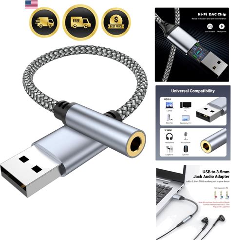 Usb Audio Adapter Kadlawus USB Audio Adapter 3.5Mm, External Sound Card For PC, Laptop, And Desktop, Stereo Adapter For Headphones And Speakers, Plug