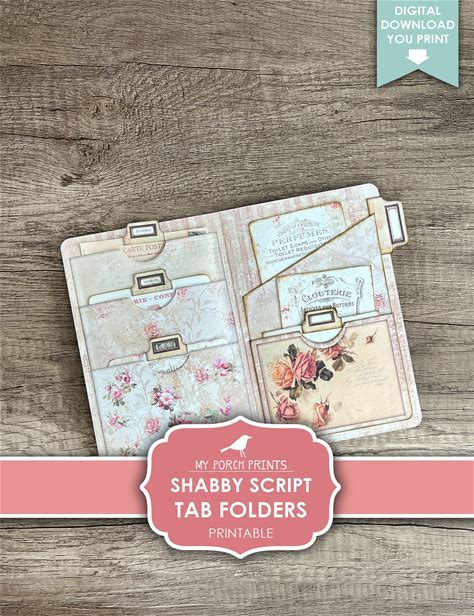 Tab Folders, Shabby Script, Junk Journal, Vintage, Folder, Pockets, Ephemera, My Porch Prints, Insert, Digital Kit, Download, Printable