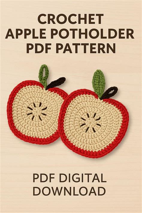 PDF Apple Crochet Pattern - Crochet Pot Holder Or Coaster Pattern - Instructions In Italian