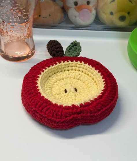 This adorable crochet apple coaster is a fun and creative handmade pr